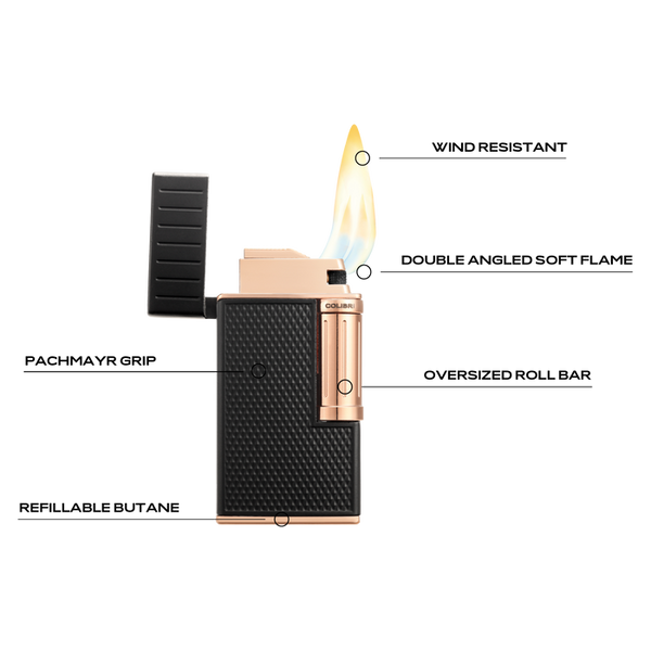 The ceremony of lighting a fine cigar is one of tradition and finesse and it starts with the proper instrument. The Julius, named in honor of Colibri founder and intrepid inventor Julius Lowenthal, is built on his legacy of innovative design, impeccable craftsmanship and acute attention to detail. Richly dressed in a gripping diamond-pattern case, the Julius is equipped with a robust double-flame that provides a strong natural burn, even outdoors. Ignition is effortless with the oversized roll bar, and power is easily increased with a gentle twist of the new touch fuel wheel. The reward: an elegant introduction to your next cigar.