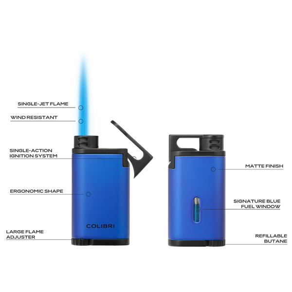 Colibri Aura Flat Flame Lighter Blue & Chrome