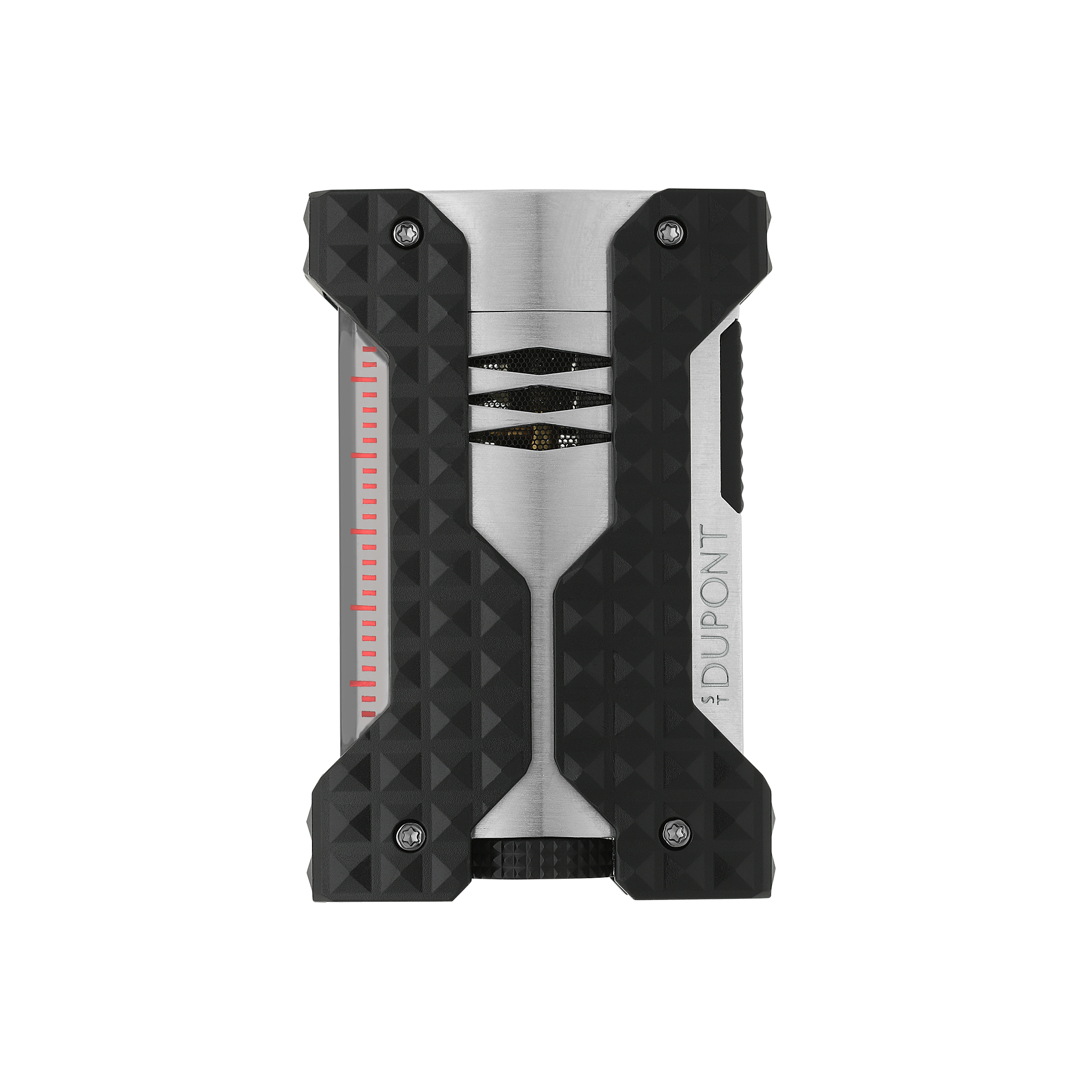 For the love of challenge and performance, S.T. Dupont develops a multi-purpose lighter designed to adapt efficiently and easily to all winds. A new flame to accompany the adventurers in their challenges and their overtaking. Equipped with a flame resistant to drafts, it guarantees an expert ignition, even under the trade winds. Brushed chrome windproof with black bumpers featuring the iconic diamond point guilloche.