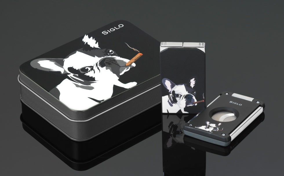 SIGLO DOG IN BLACK LIGHTER & CUTTER SET