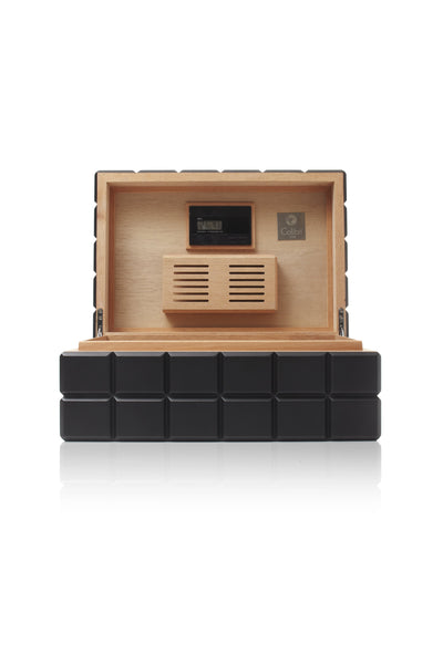 Boasting a large roomy interior to accommodate your perfectly curated collection, the Grand Quasar Humidor can easily hold up to 175 cigars. Its other features include an air-tight seal, innovative soft-close lid, digital hygrometer, and magnetic humidification system. The removable tray and two dividers allow for custom organization and storage. The GQ will display your cigars with grandeur and sophistication, and is available in five colors: black, red, gunmetal, navy, and white.