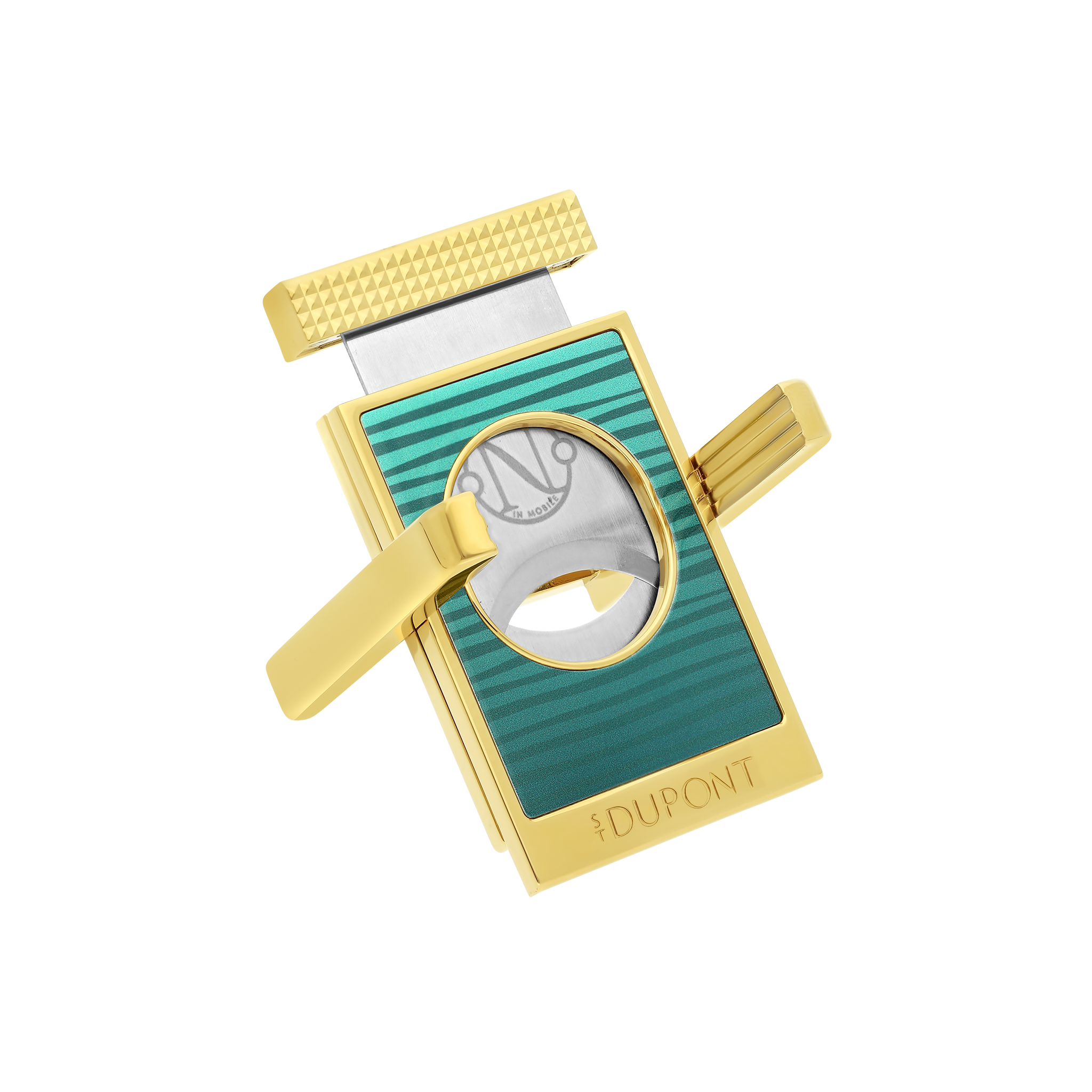 Cigar cutters stand decorated with a turquoise lacquer and the engraved Nautilus logo, golden and shiny finishes.