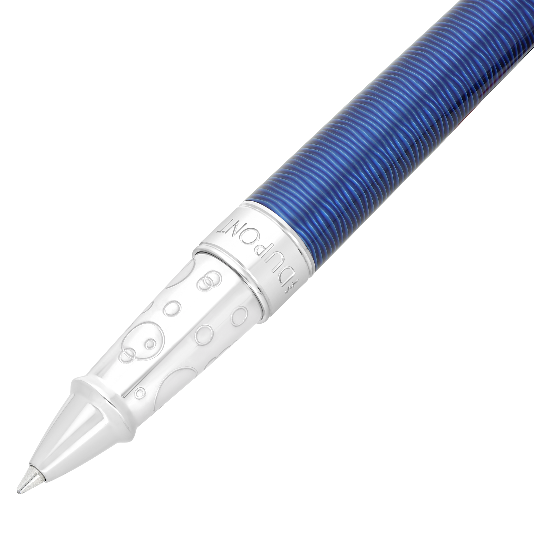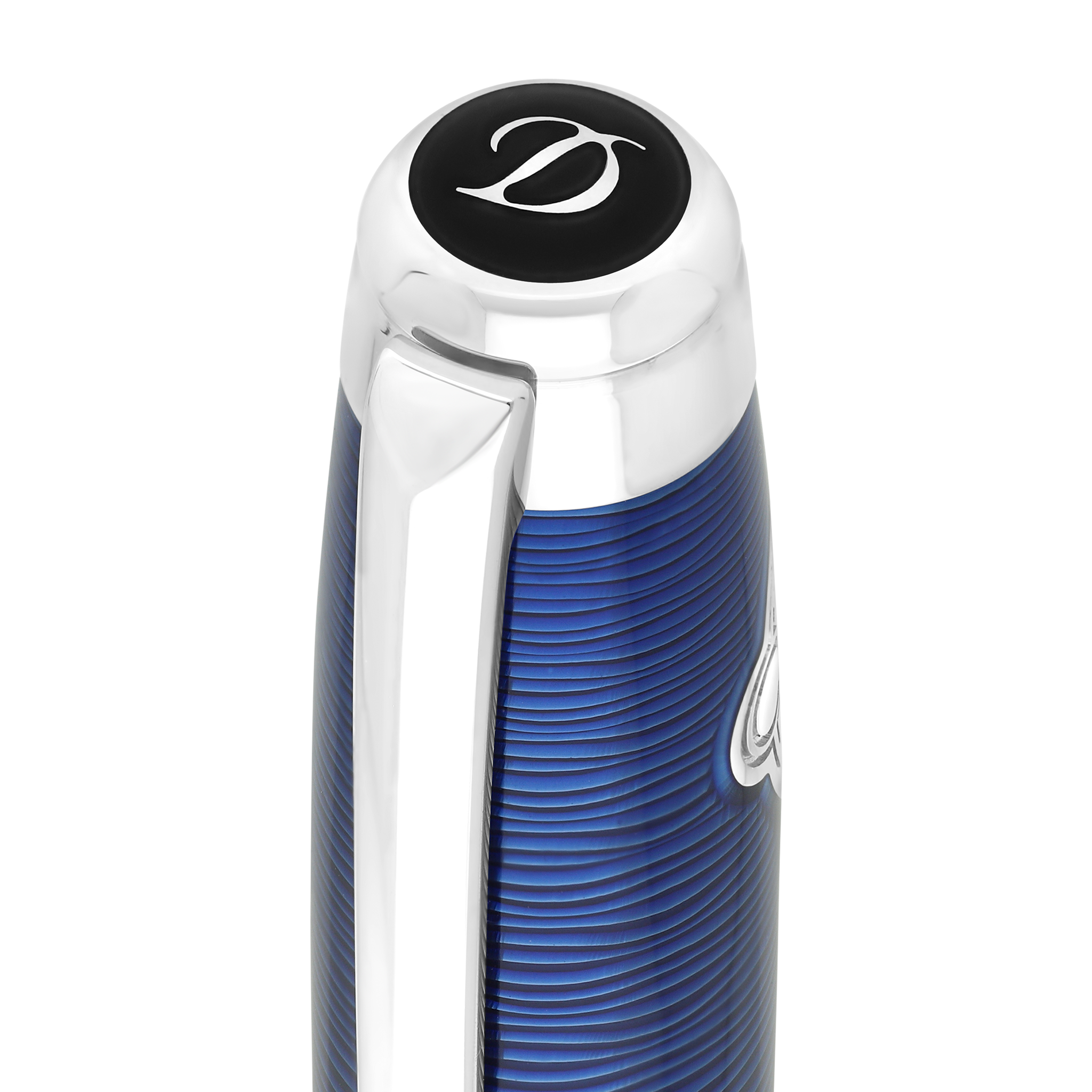 Line D Eternity wide guilloche roller pen under "waves" lacquer. Covered with S.T. Dupont blue gradient lacquer. Palladium finishes.