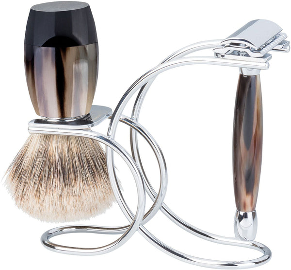The basically strong badger hair with the fine silver tips makes your soap foam and massages your face for a relaxing shave.