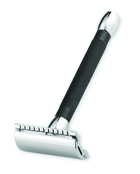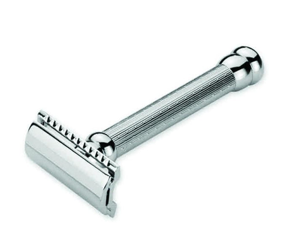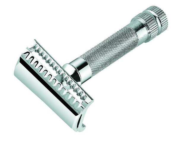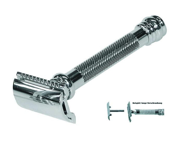 Grip made of aluminum, surface galvanically coated in bright chrome or black anodized, trimmings badger hair, silvertip.