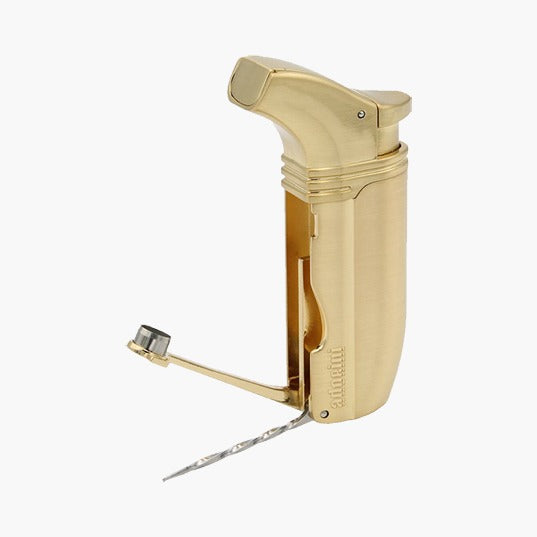 Cigar and pipe lighter with double jet flame Including one round cutter (7mm) for cigars and a thorn for pipe tobacco.