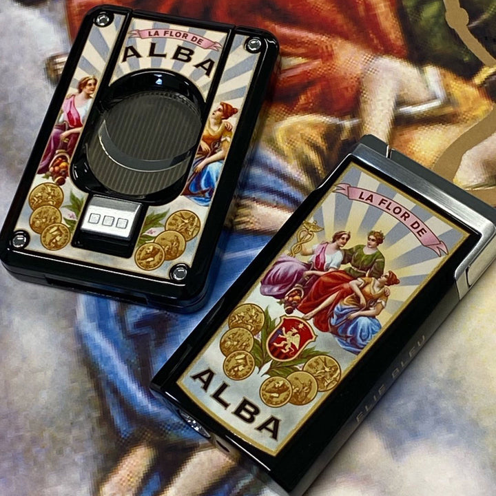 Elie Bleu double blade cigar cutter in black Lacquer, La Flor de Alba collection. The range of cigar accessories from Elie Bleu would not be complete without this collection of cigar cutters developed by the brand.