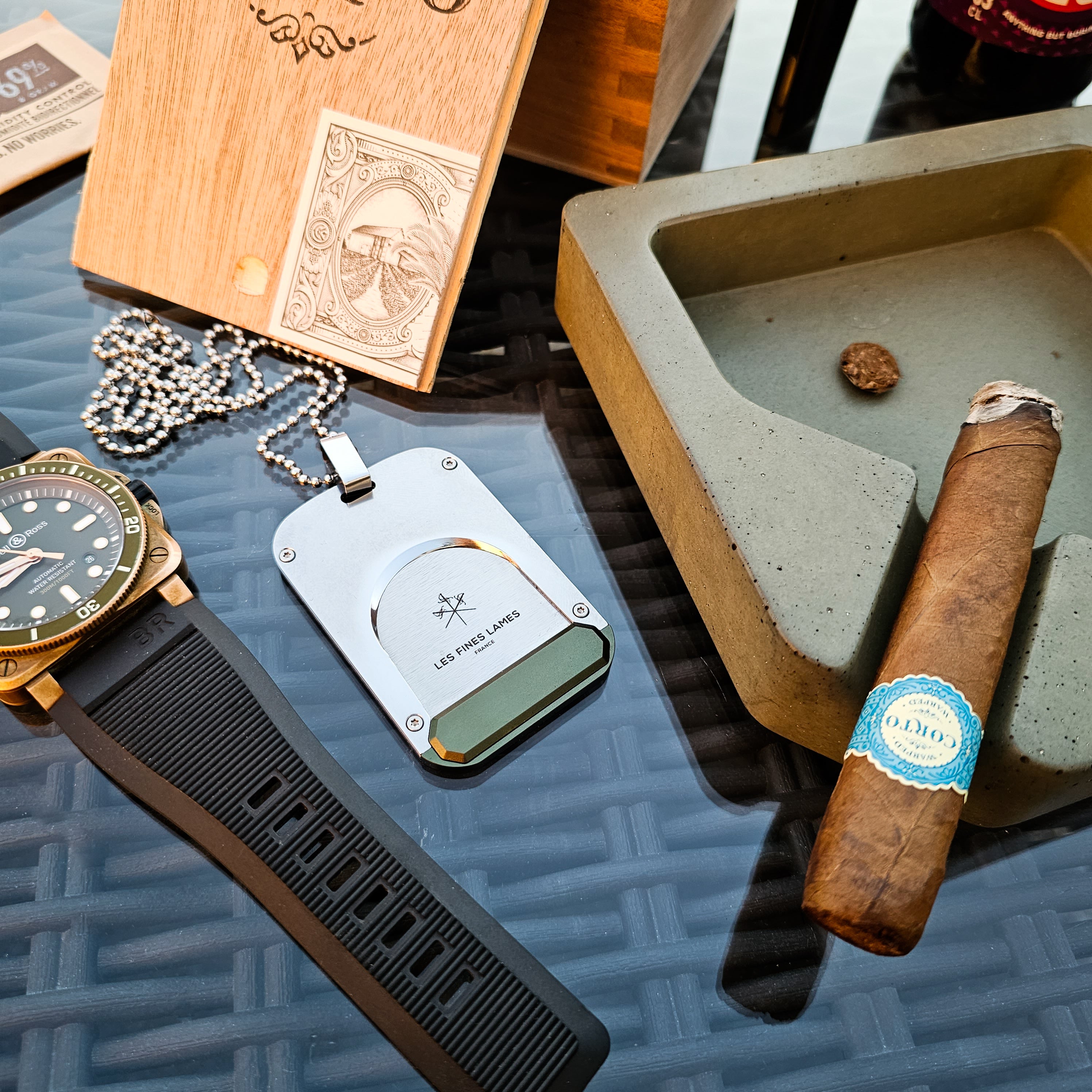 Made in France, ultra-thin and solid, LE TAG matches the size of an original army dog tag and can cut cigars up to a 64 gauge.