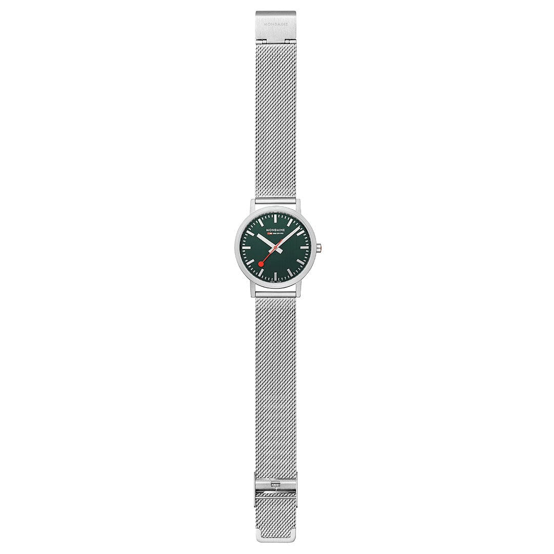 MONDAINE CLASSIC FOREST GREEN PETITE SILVER-CASE WATCH A660.30314.60SBJ 36MM