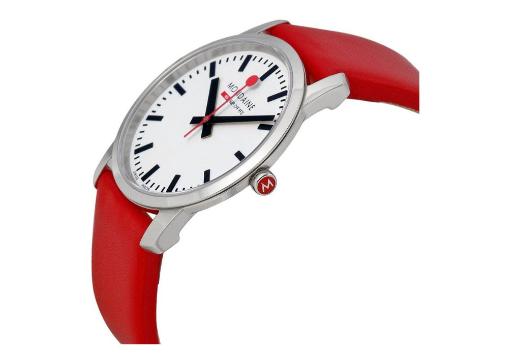 The Simply Elegant collection is designed for people who love the Mondaine design, but want something more elegant and dressy, perfect for a day in the office or a night on the town. The Simply Elegant case is quite thin, only 6.2 mm high, and the specially designed lugs of the case allow the watch to adapt to any size wrist so the watch sits comfortably flat.