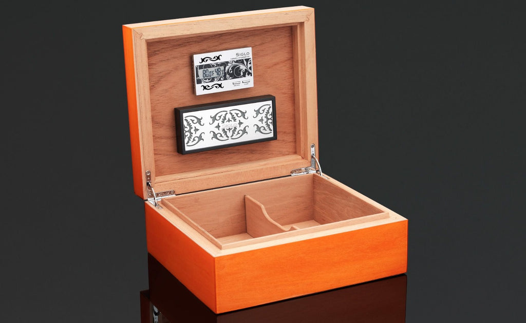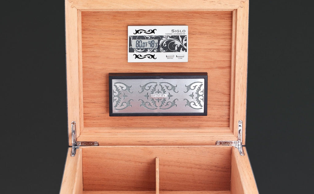Much time and effort was invested to the design, concept and making of the Siglo humidor. The Siglo Humidors ensure optimum storage condition for your valuable cigars. Each humidor is unique, and slight variations in colors are signs of craftsmanship and natural beauty of the product. Each humidor comes complete with a digital hygrometer and a humidifier. All Siglo humidors are individually packaged. All Siglo humidor boxes come in a velvet bag and presented in beautiful Siglo gift box.
