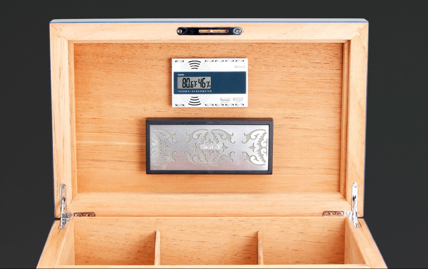 Much time and effort was invested to the design, concept and making of the Siglo humidor. The Siglo Humidors ensure optimum storage condition for your valuable cigars. Each humidor is unique, and slight variations in colors are signs of craftsmanship and natural beauty of the product. Each humidor comes complete with a digital hygrometer and a humidifier. All Siglo humidors are individually packaged. All Siglo humidor boxes come in a velvet bag and presented in beautiful Siglo gift box.