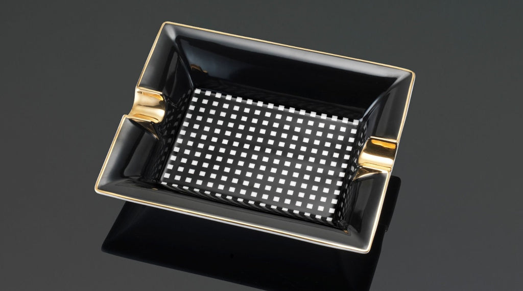 Gold on black is always eye-catching. This Black Checkers ashtray has black and white checkers at the centre highlighted with gold decorations, giving you a simple yet elegant choice.