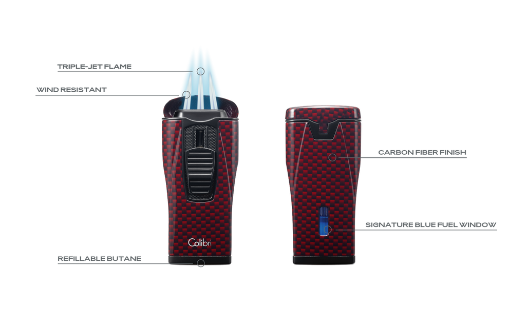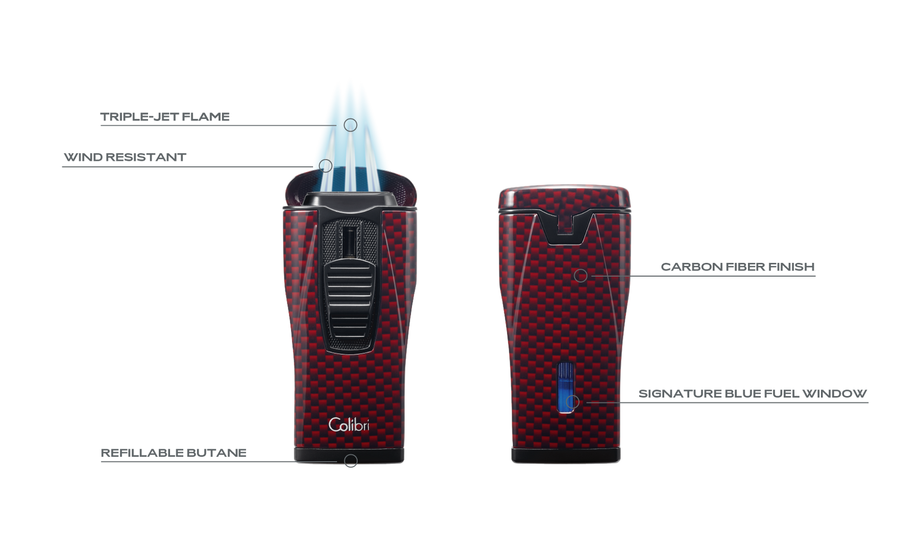 Inspired by the exhilarating racing circuits of Europe, the Monaco cigar lighter powers its own excitement with triple-jet flames in pyramidal formation. Its slim-profile and contoured sides elegantly hint at its superior ergonomics—and it is confirmed once in your hand as your assuredly engage the instrument and light your cigar. Additionally, the blue fuel window technology makes for easy quick fuel level readings. Available in five colors.