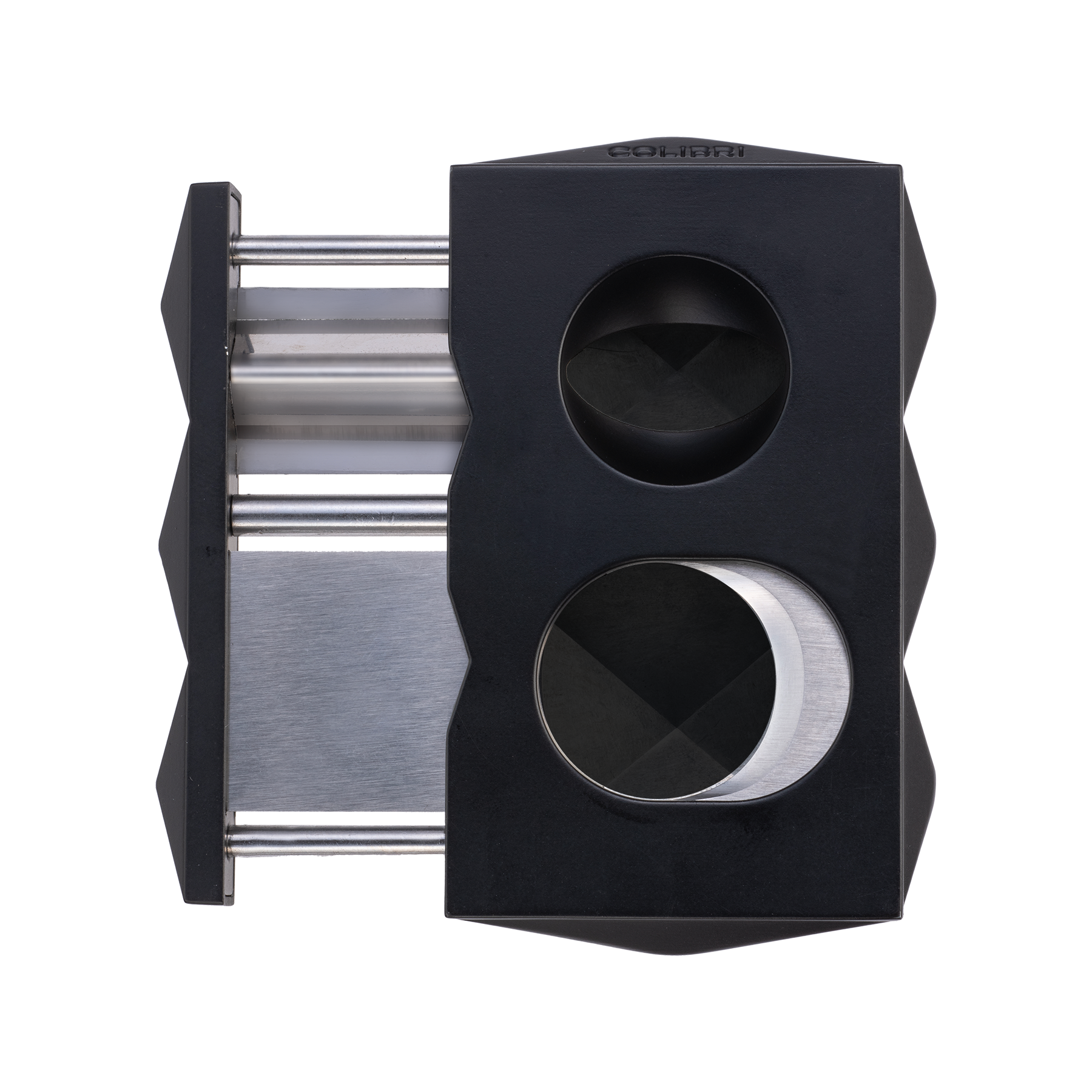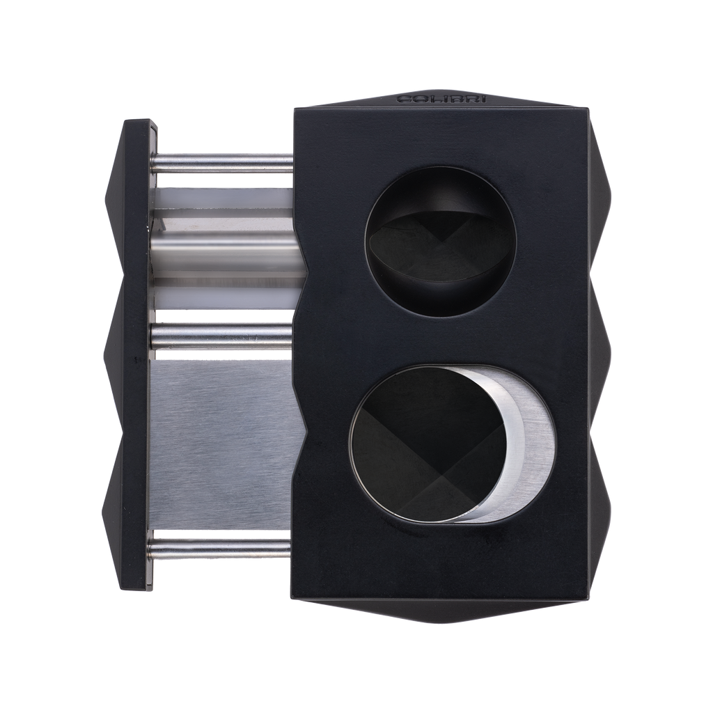 The Quasar cutter is a two-in-one combination of the Colibri V-Cut and S-Cut cigar cutters in the ultimate desktop/tabletop format.