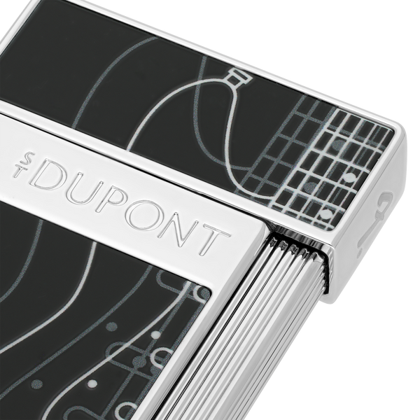 S.T. Dupont's expertise in metalwork, as well as in the art of lacquering and leather-coated canvas, comes together in the Monogram 1872 collection. Dupont expertise come together in the Monogram 1872 collection. Firmly rooted in their time, the pieces in the collection all feature the new S.T. Dupont logo: upright, determined, and proud. The Grand Dupont lighter, guilloché-decorated with the 1872 Monogram motif and finished in black, is equipped with a dual ignition system: yellow or blue flame. The lighter is delivered empty of gas; refill sold separately. Screwdriver included for changing the flint.