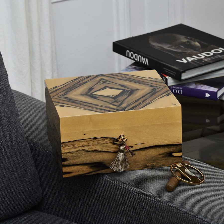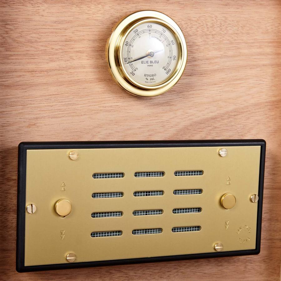 Cigar Cellar in Padouk. Elie Bleu selects the best woods around the world in the most remote places. Brought back to France, they are delicately modeled and treated to be placed on the boxes.