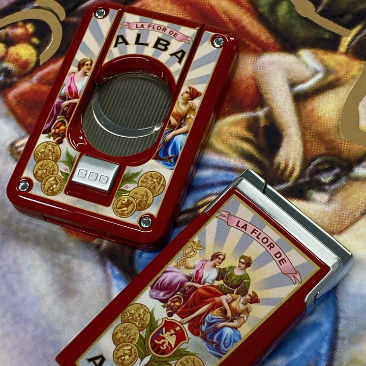 Elie Bleu double blade cigar cutter in red Lacquer, La Flor de Alba collection. The range of cigar accessories from Elie Bleu would not be complete without this collection of cigar cutters developed by the brand.