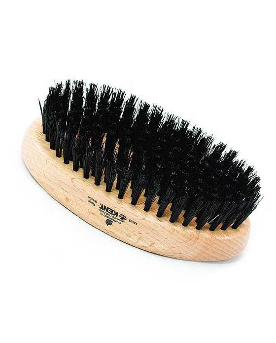 Kent Brushes has been the leading manufacturer of bristle brushes and faux-tortoiseshell combs since 1777. Receiving only the finest bristles and timbers from around the world, quality is assured each step of the way. The Kent Natural Shine Military Brush offers a deluxe brush through your hair. Made with stiff black bristles, it will get through tangles and style thick hair with ease. Despite the lack of handle, the palm of the hand can maneuver throughout the scalp to encourage circulation and improve shine. Ideal for everyday grooming.