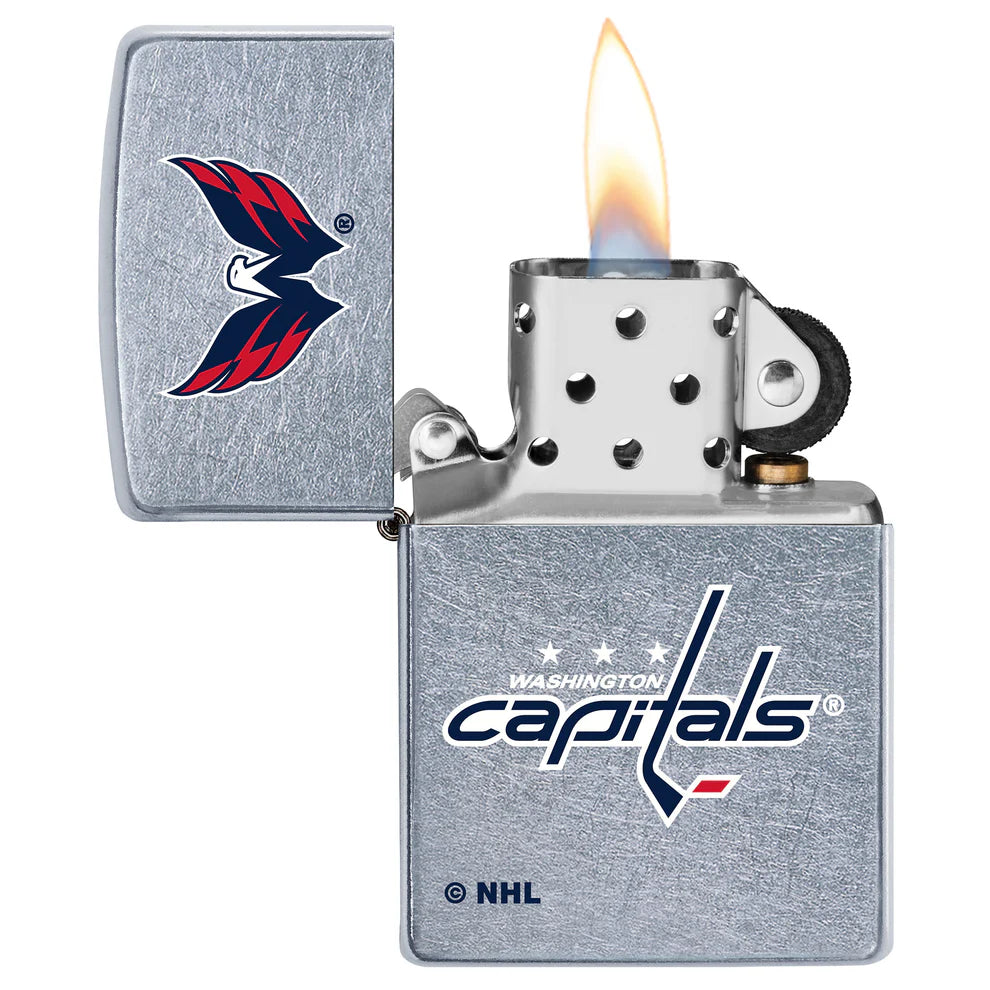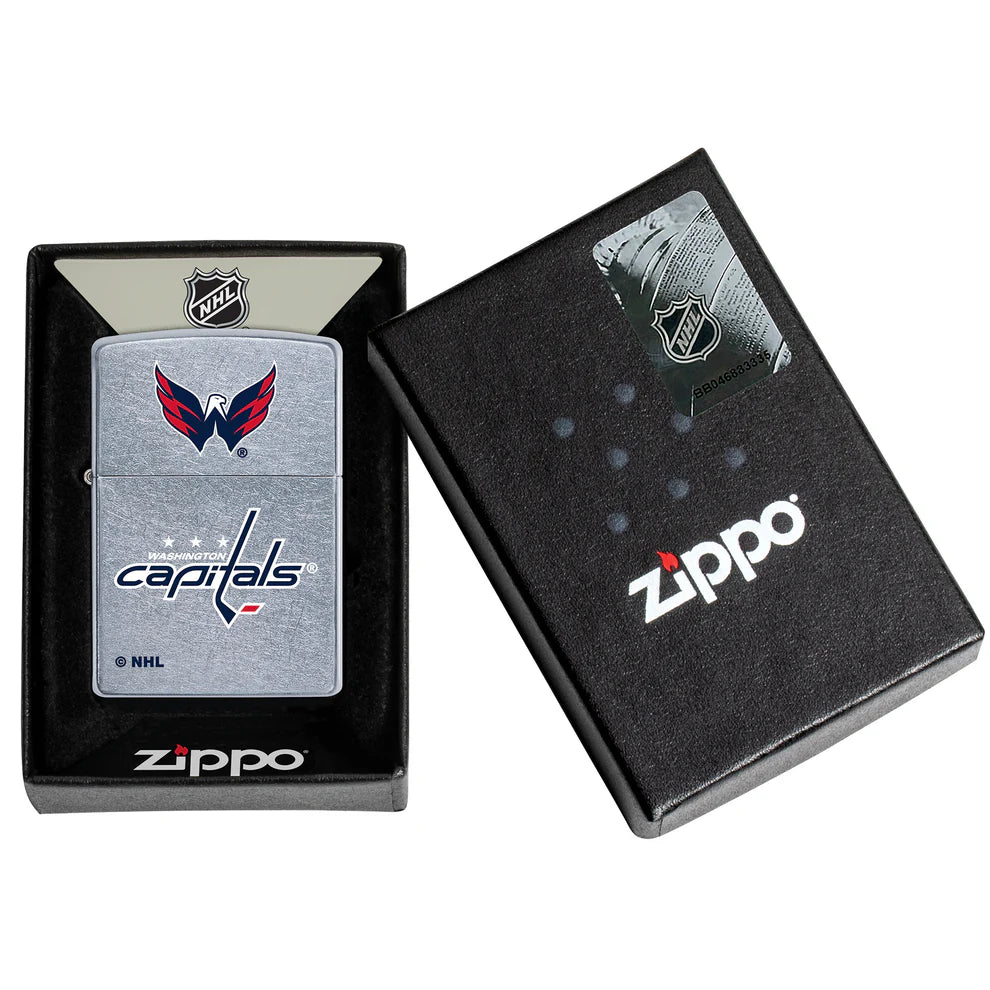 A true hockey fan will make room on the memorabilia shelf for this Zippo NHL® lighter. Show your team spirit with this official NHL® Zippo windproof lighter. The design features the Capital's logo, which is color imaged on a rugged Street Chrome™ finish. Comes packaged in a gift box. For optimal performance, fill with Zippo lighter fuel.