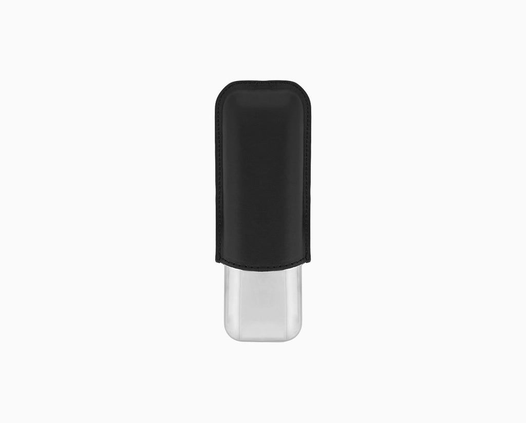 This silver-toned metal case for 2 cigars is carefully designed with smooth calfskin leather. The 24 Hours of Le Mans logo is stamped on the front of the case. The case offers a sporty design evoking the spirit of motor racing in three color. Inkjet printing creates tricolor lines on calfskin leather symbolizing movement and speed, inseparable elements of motorsport.