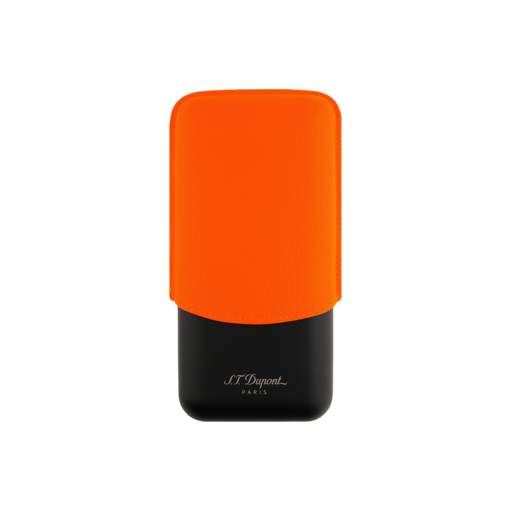 S.T. Dupont 3 cigar Leather case Fluo Neon Orange 183419