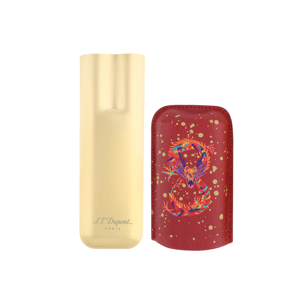 S.T. Dupont BURGUNDY & GOLDEN YEAR OF THE DRAGON 2-CIGAR CASE 183276