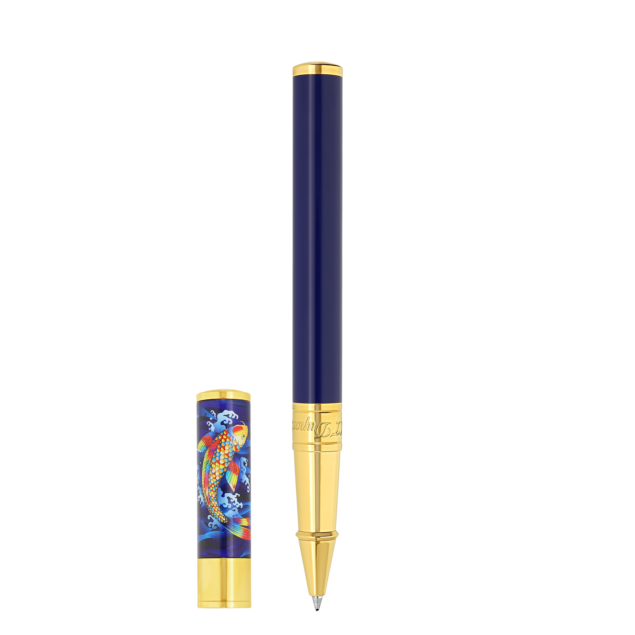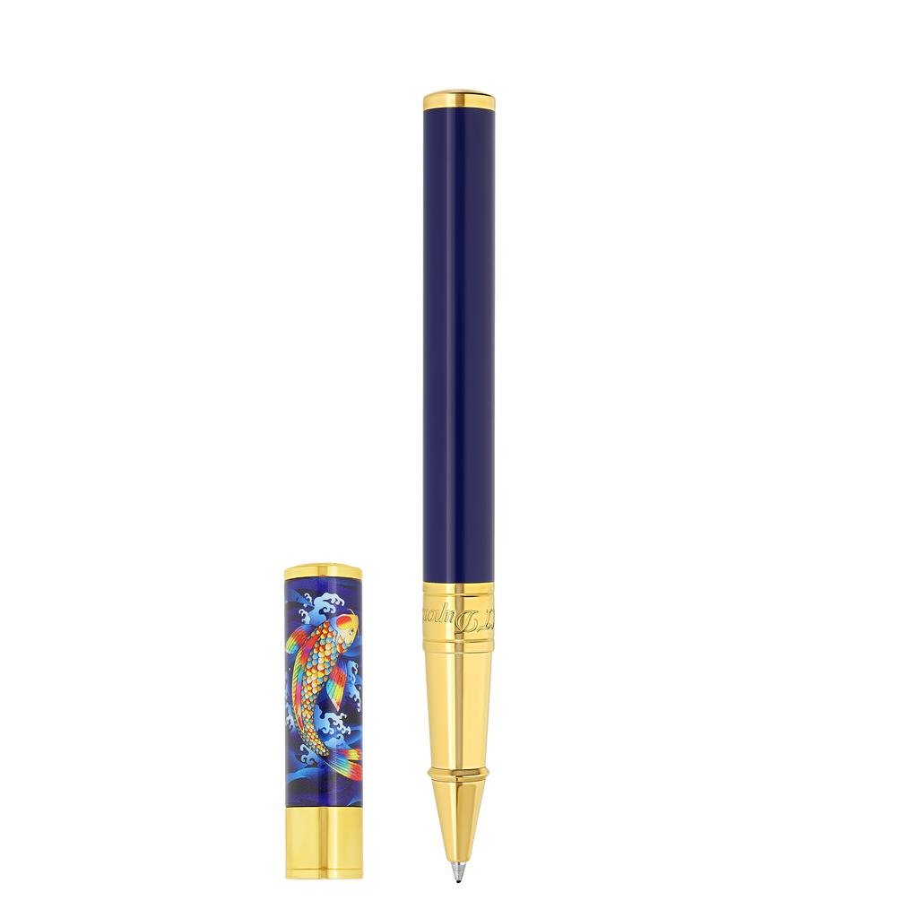 S.T. Dupont D-INITIAL ROLLERBALL BLUE & GOLD PEN KOI FISH