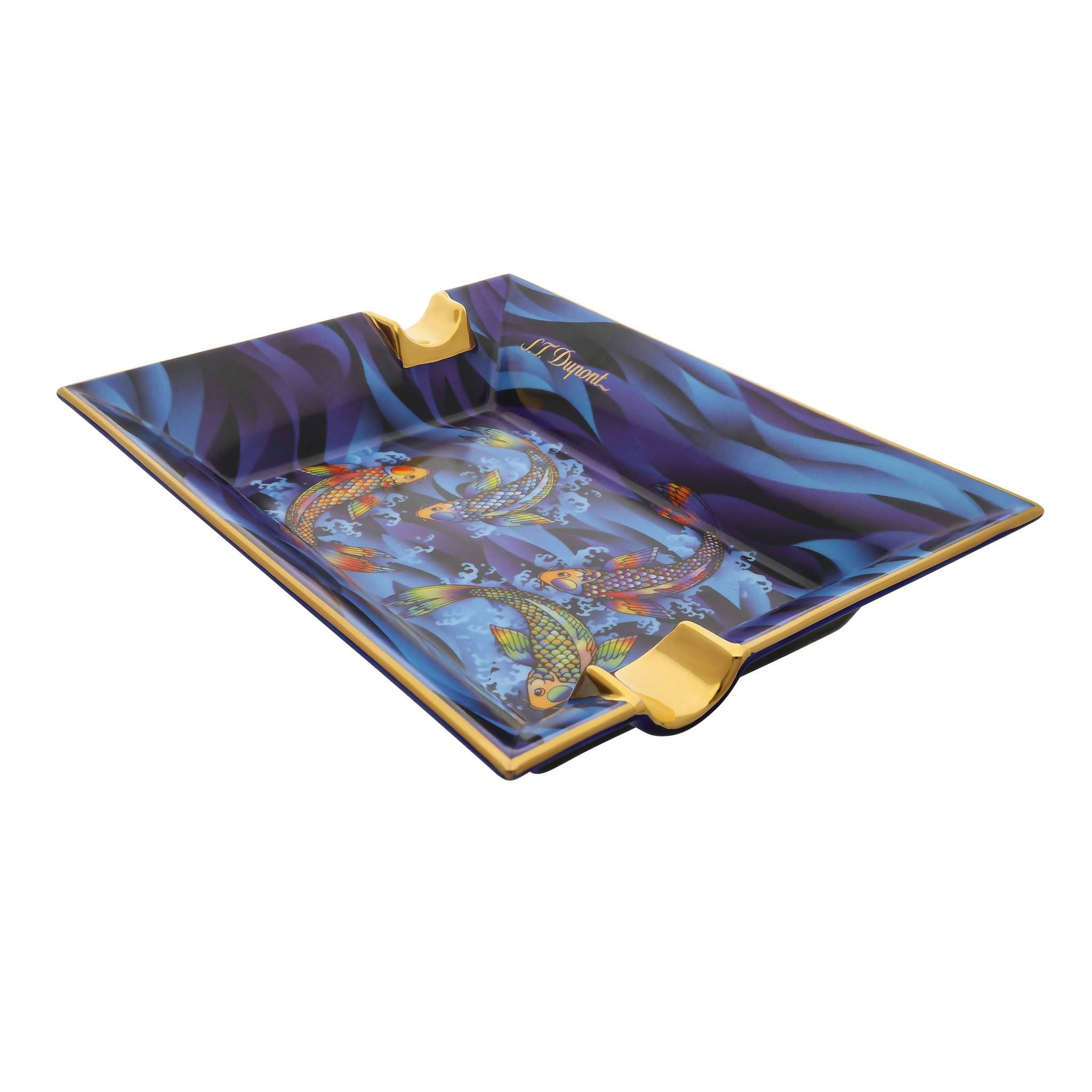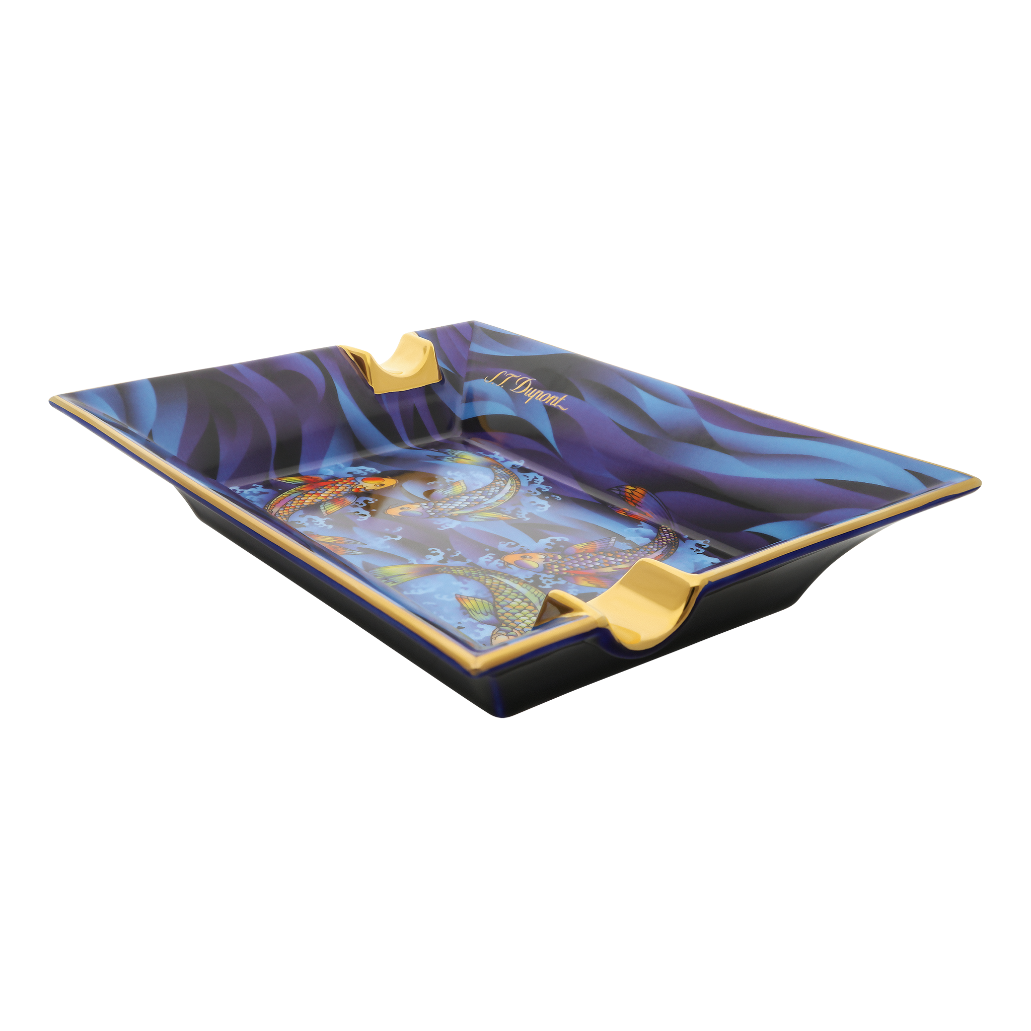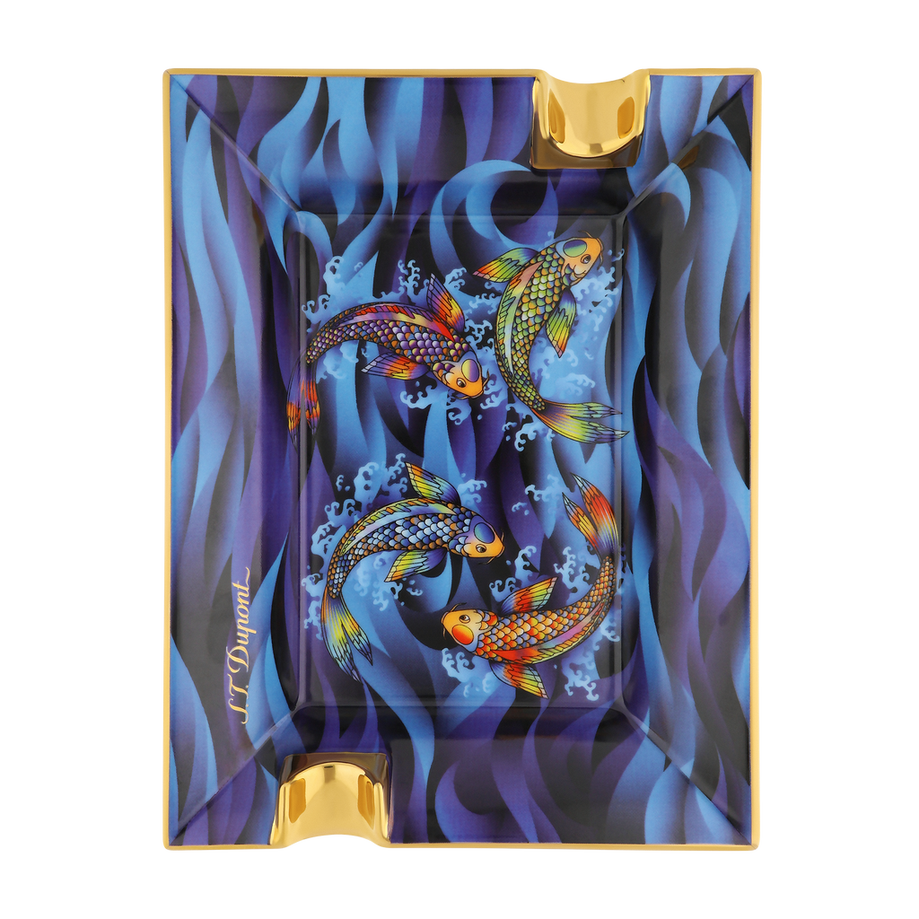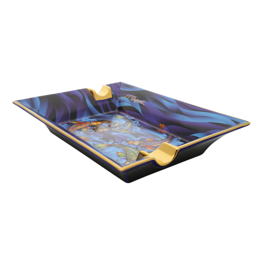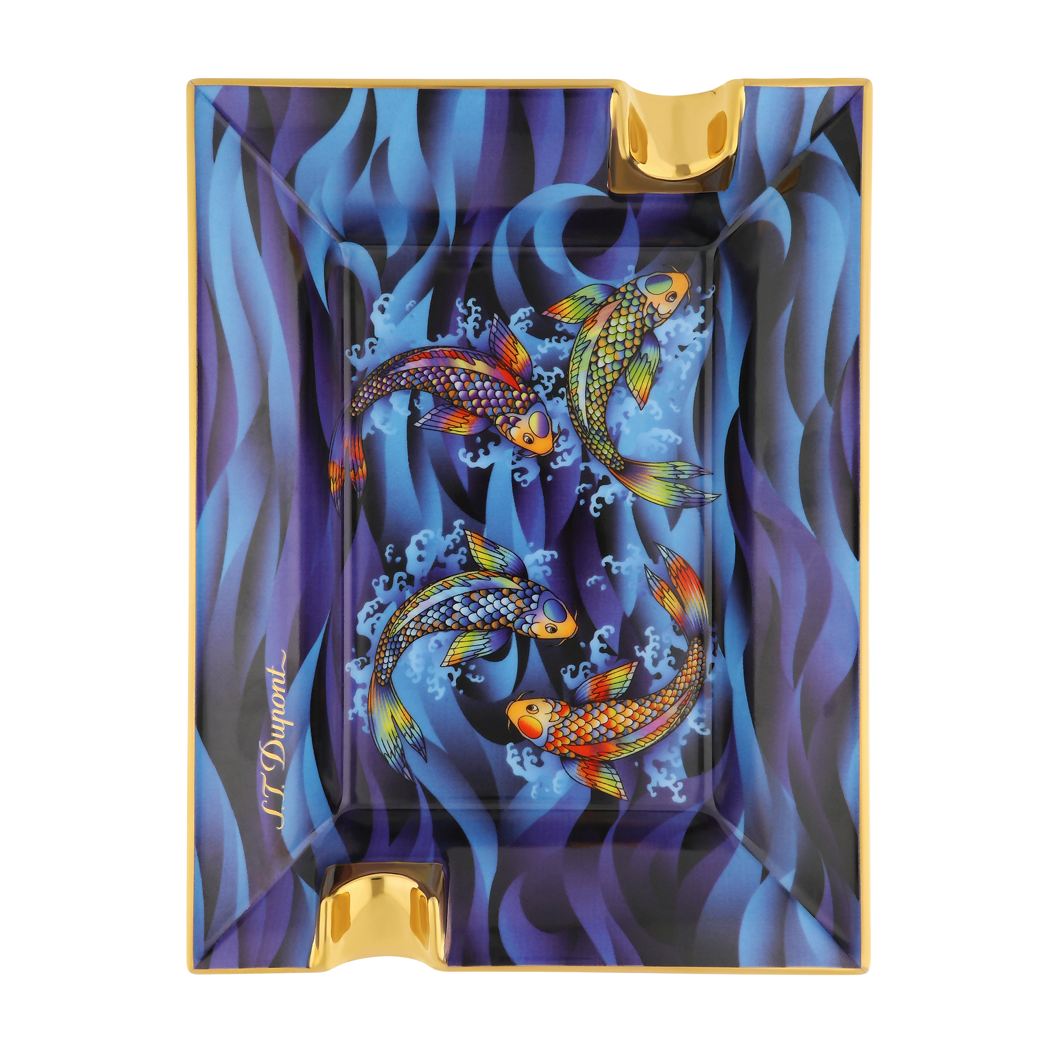 Large ashtray decorated with the koi fish motif, hand-gilded details.
