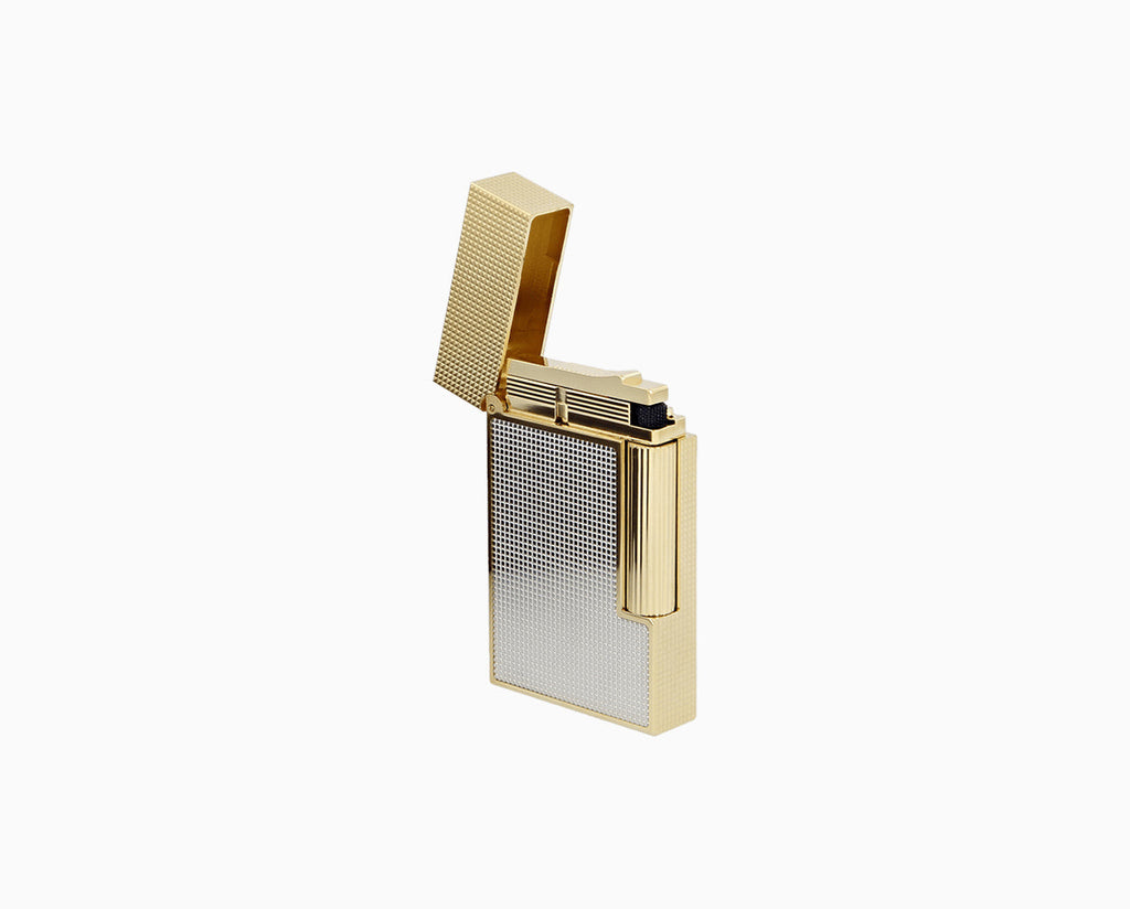 The new Ligne 2 series features a solid brass body with a microdiamond head finish and is available in yellow gold. Full-sized classic Ligne 2 lighter featuring a gold microdiamond head pattern with a perfect cling upon opening.