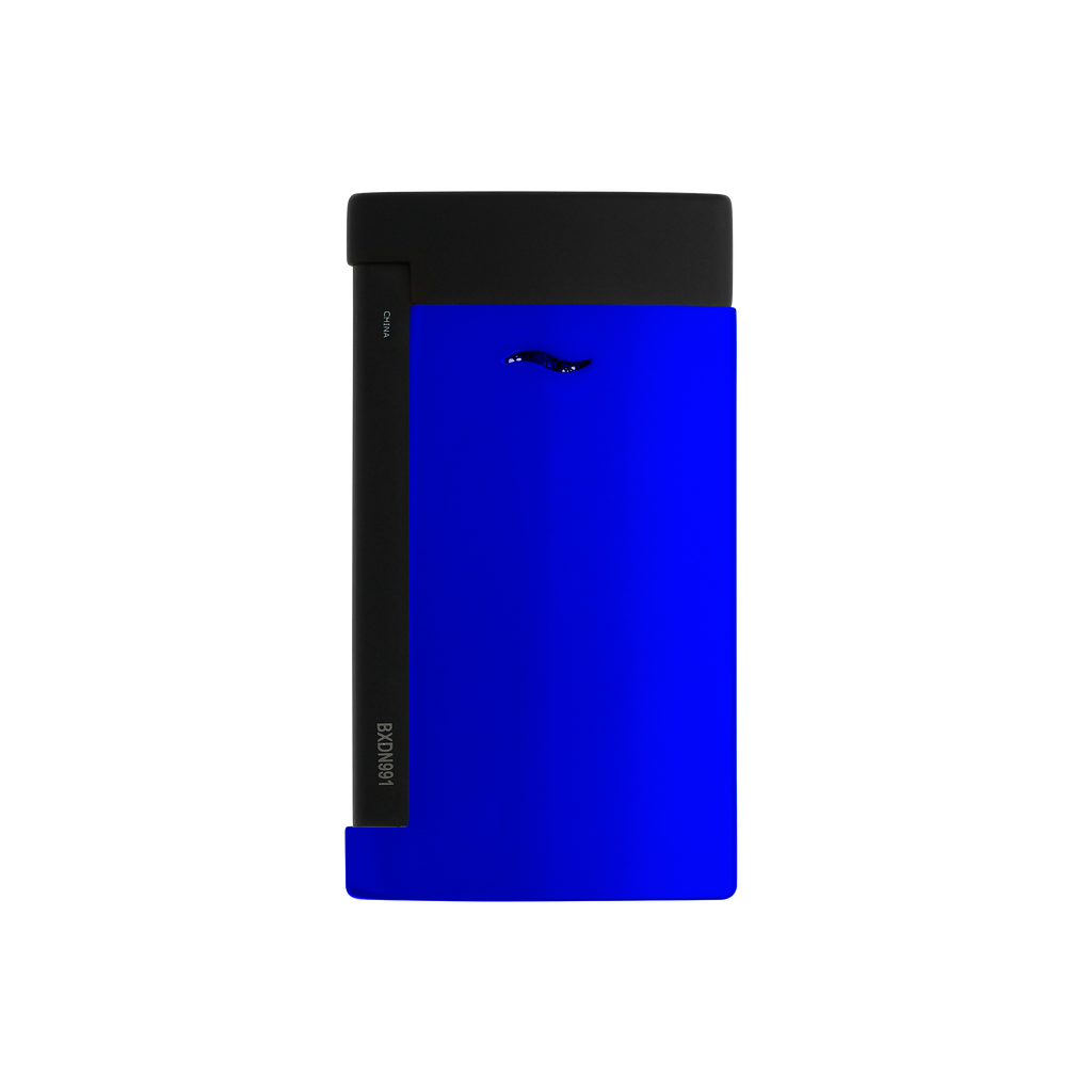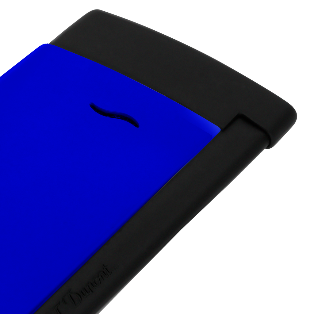 Slim 7 briquet in fluo blue gloss lacquer and matte black attributes.