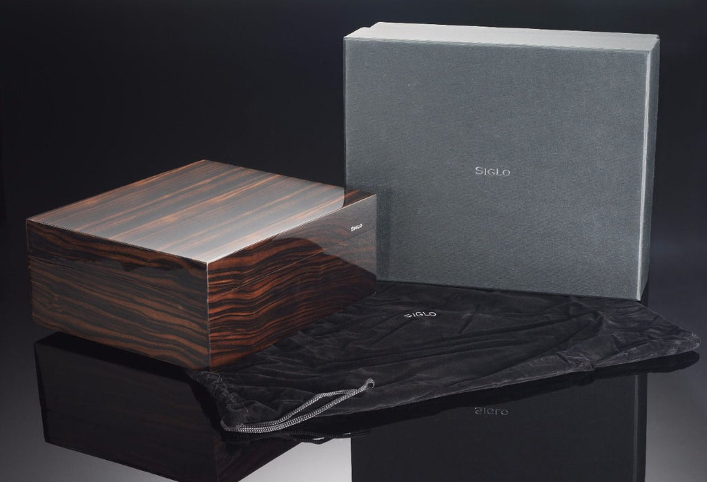 Much time and effort was invested to the design, concept and making of the Siglo humidor. The Siglo Humidors ensure optimum storage condition for your valuable cigars. Each humidor is unique, and slight variations in colors are signs of craftsmanship and natural beauty of the product. Each humidor comes complete with a digital hygrometer and a humidifier. All Siglo humidors are individually packaged. All Siglo humidor boxes come in a velvet bag and presented in beautiful Siglo gift box.