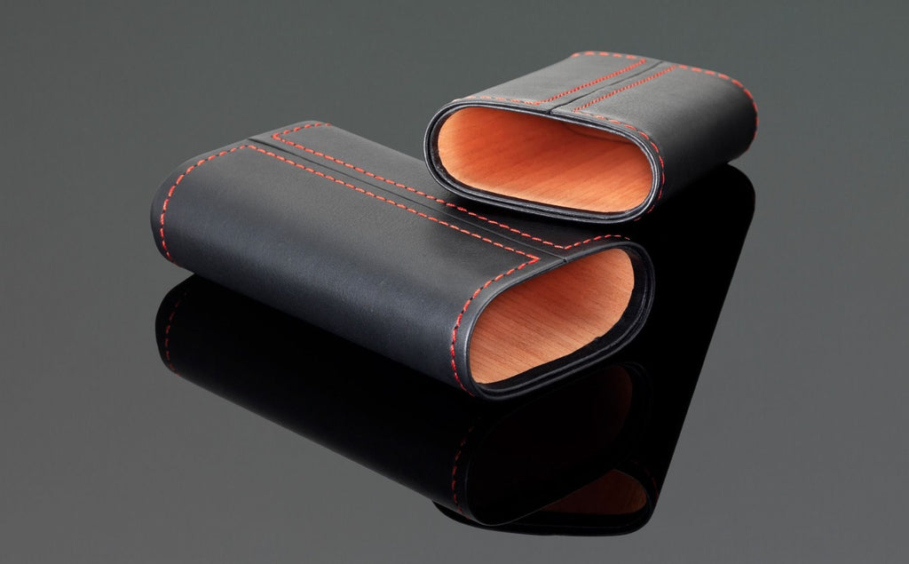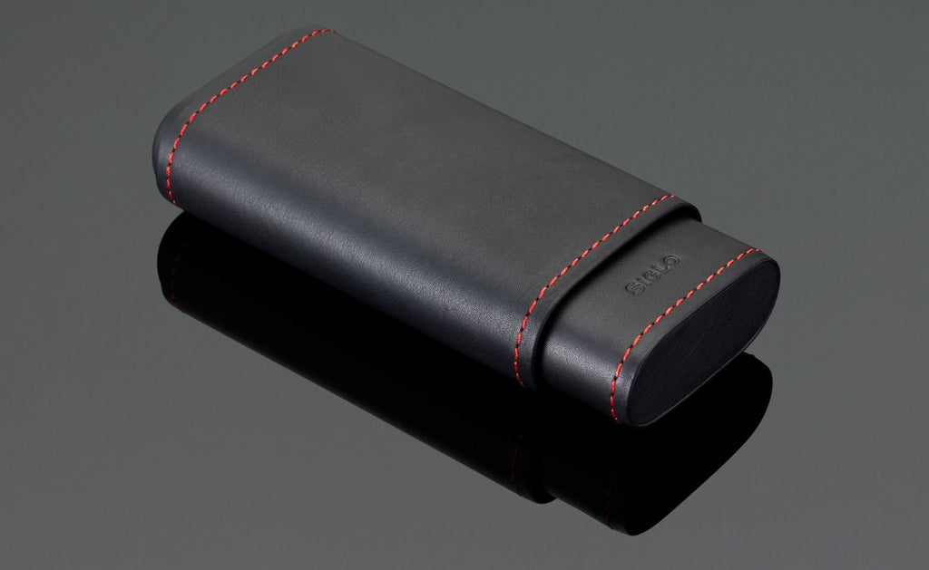 The Siglo "Stitches" series of cigar pouch is made of genuine calf leather with an inlaid of cedar veneer inside the pouch. Suitable for 50 ring gauge cigars.