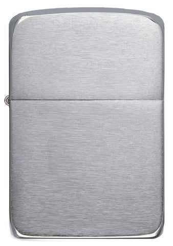 This Brushed Chrome Replica lighter is a popular model. The case has flat planes with sharper, less rounded edges where the front and back surfaces meet the sides. Lid and the bottom are joined with a four-barrel hinge. Inside unit is flatter, with squared edges where they meet the front and back surfaces meet the sides. Comes packaged in a gift box. For optimal performance, fill with Zippo lighter fluid.